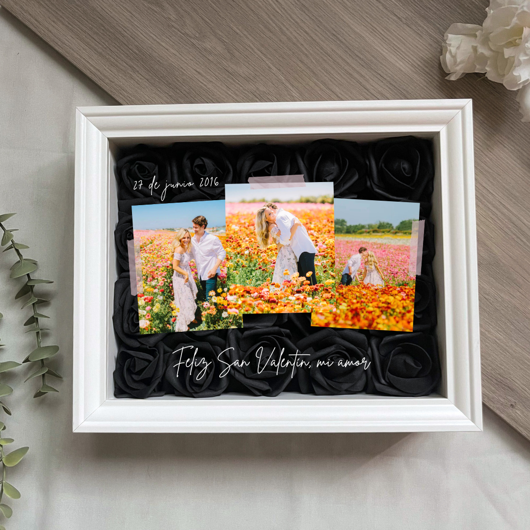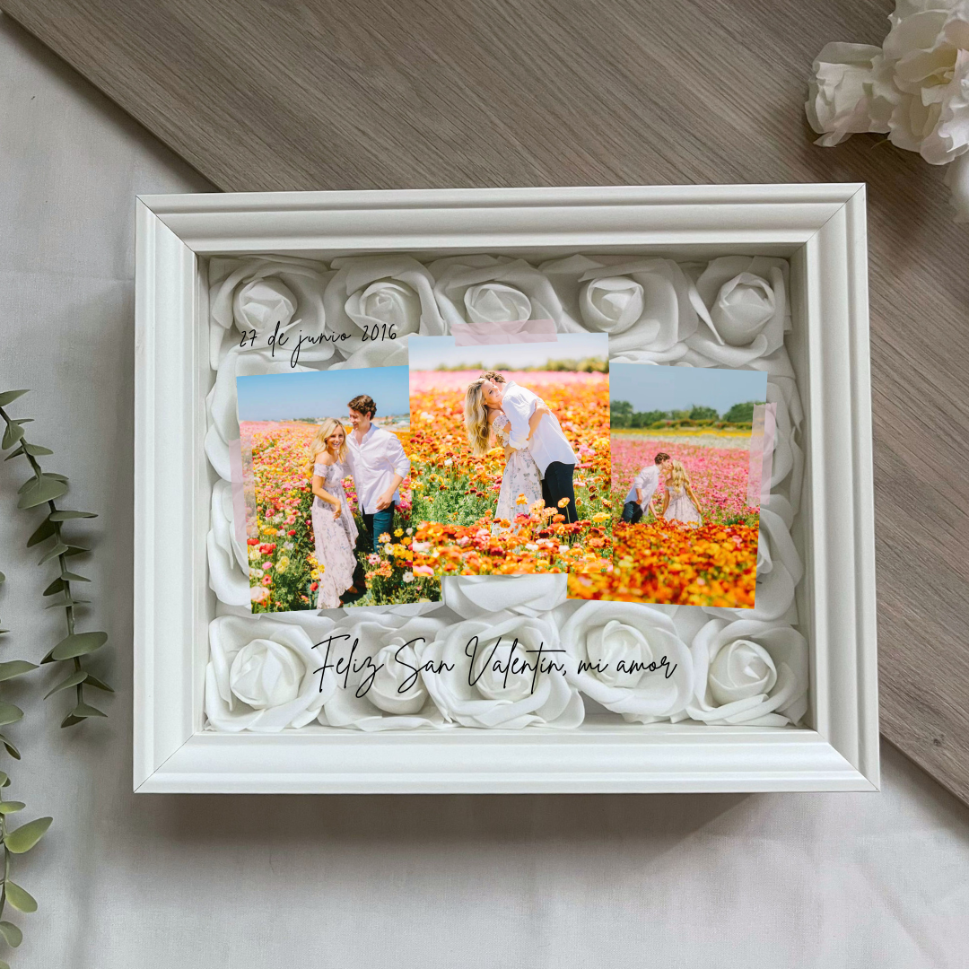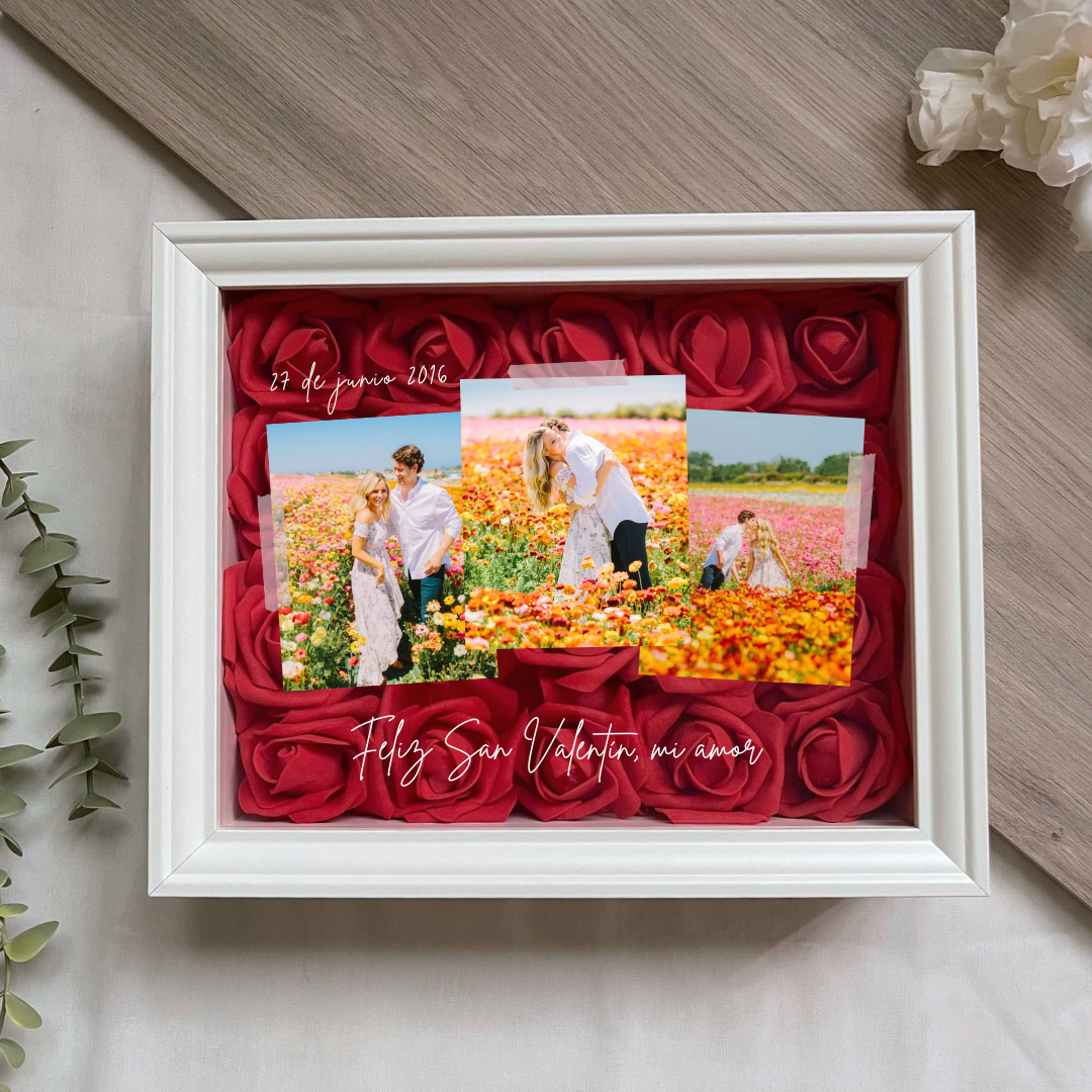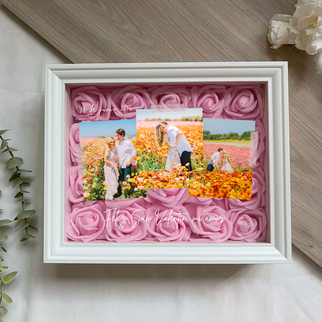 Este cuadro Personalizado hecho con rosas , es un detalle ideal para regalar en cualquier ocasión. Mide 20x25 cm y se puede colgar en la pared o apoyar sobre una superficie, como una estantería, una cómoda o una mesita de noche.