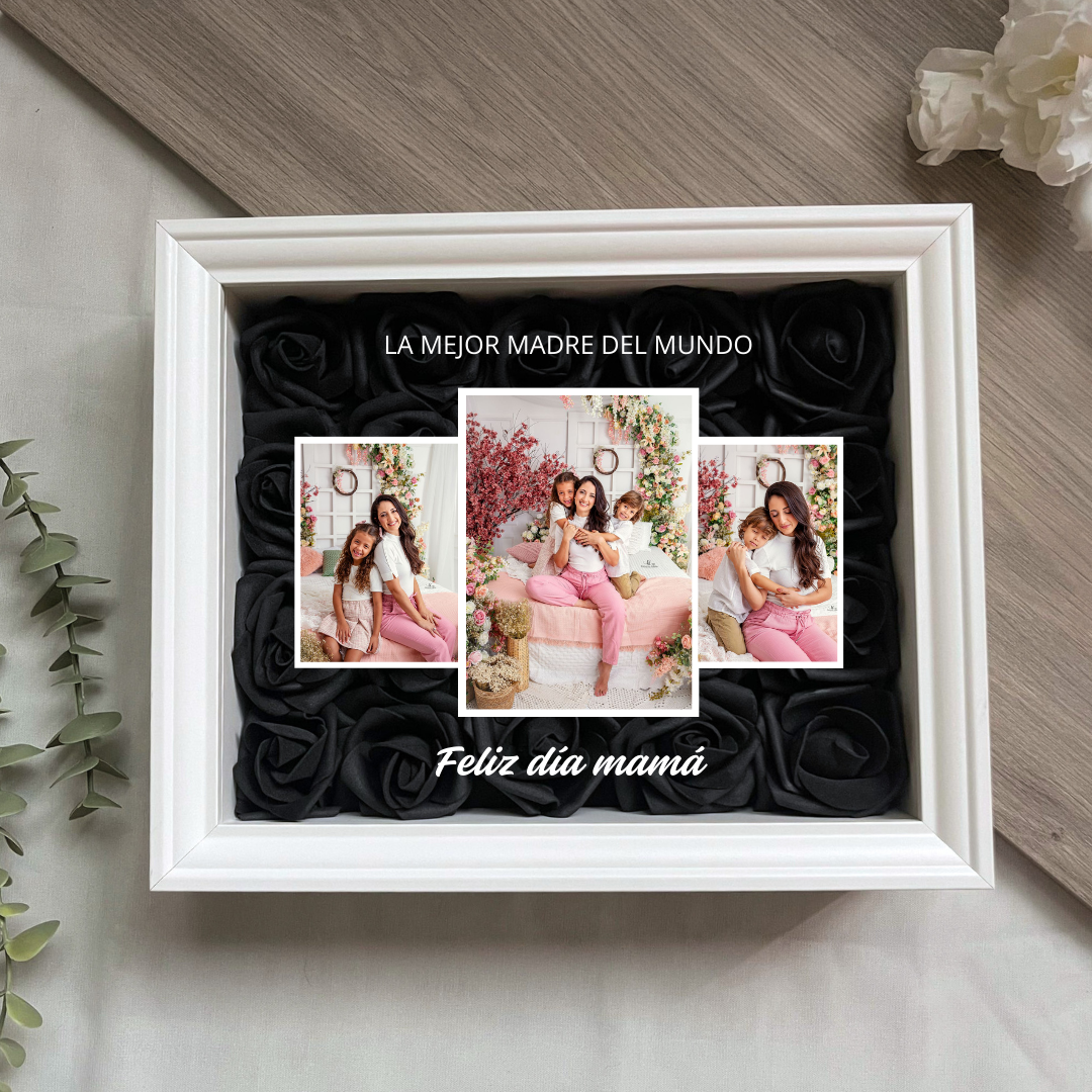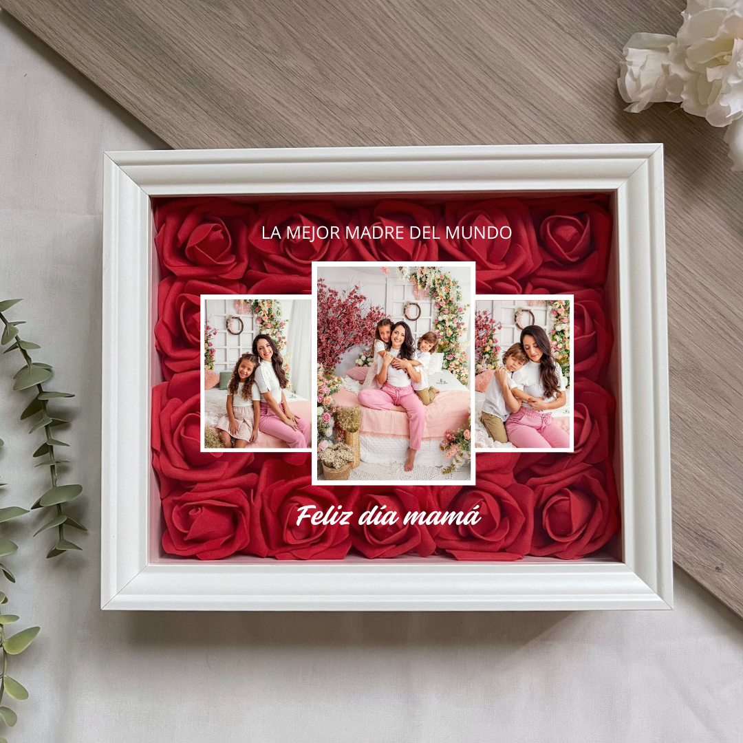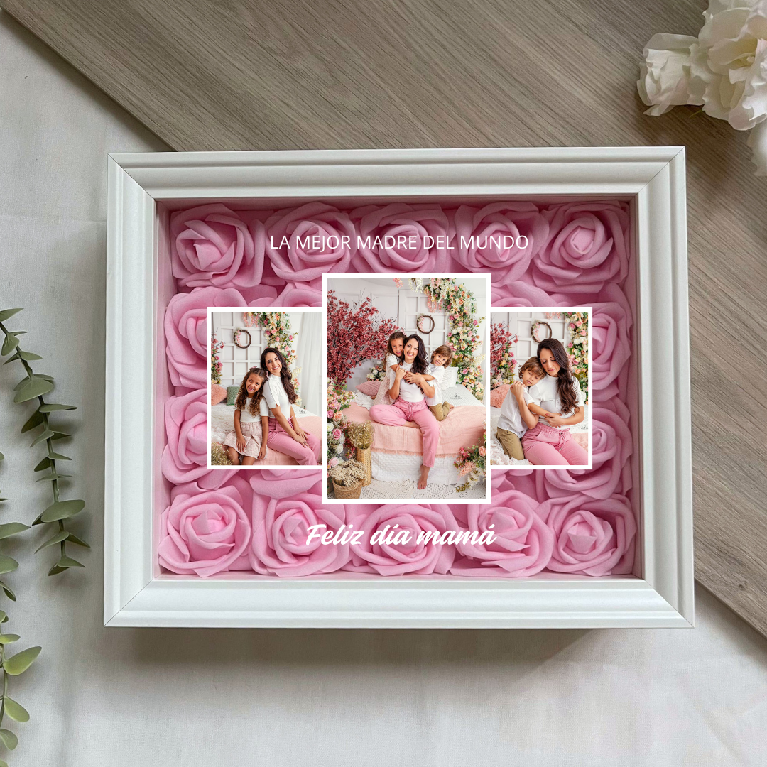 Este cuadro Personalizado hecho con rosas , es un detalle ideal para regalar en cualquier ocasión. Mide 20x25 cm y se puede colgar en la pared o apoyar sobre una superficie, como una estantería, una cómoda o una mesita de noche.