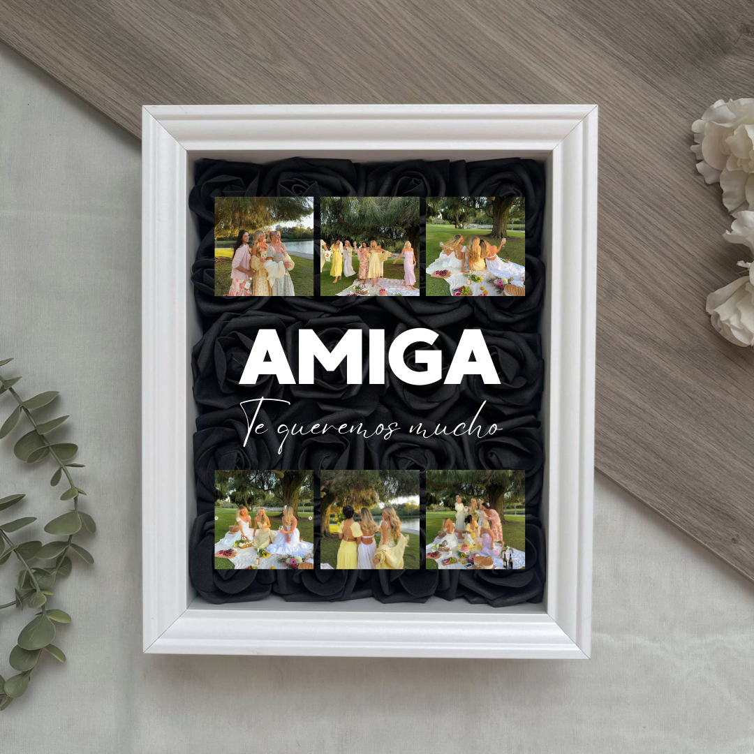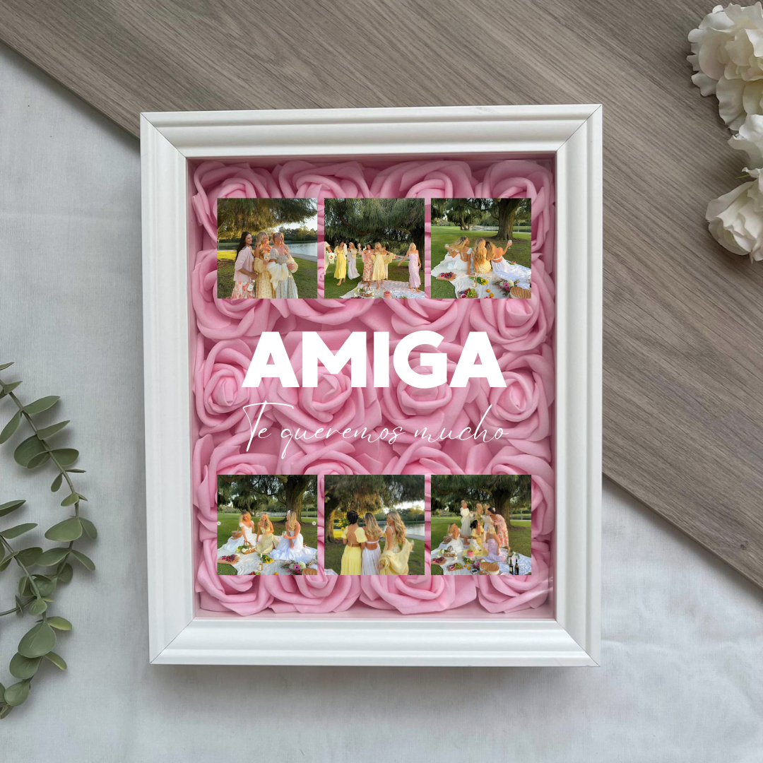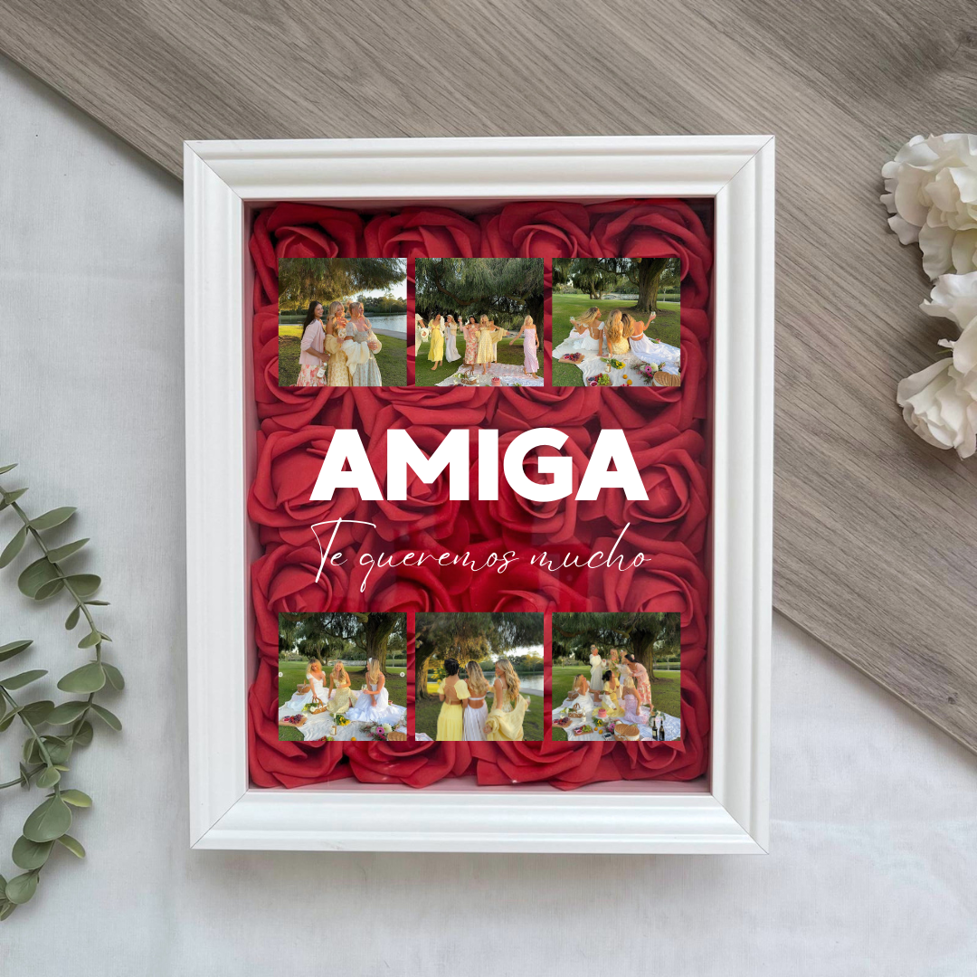 Este cuadro Personalizado hecho con rosas , es un detalle ideal para regalar en cualquier ocasión. Mide 20x25 cm y se puede colgar en la pared o apoyar sobre una superficie, como una estantería, una cómoda o una mesita de noche.