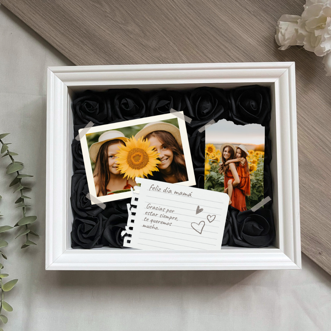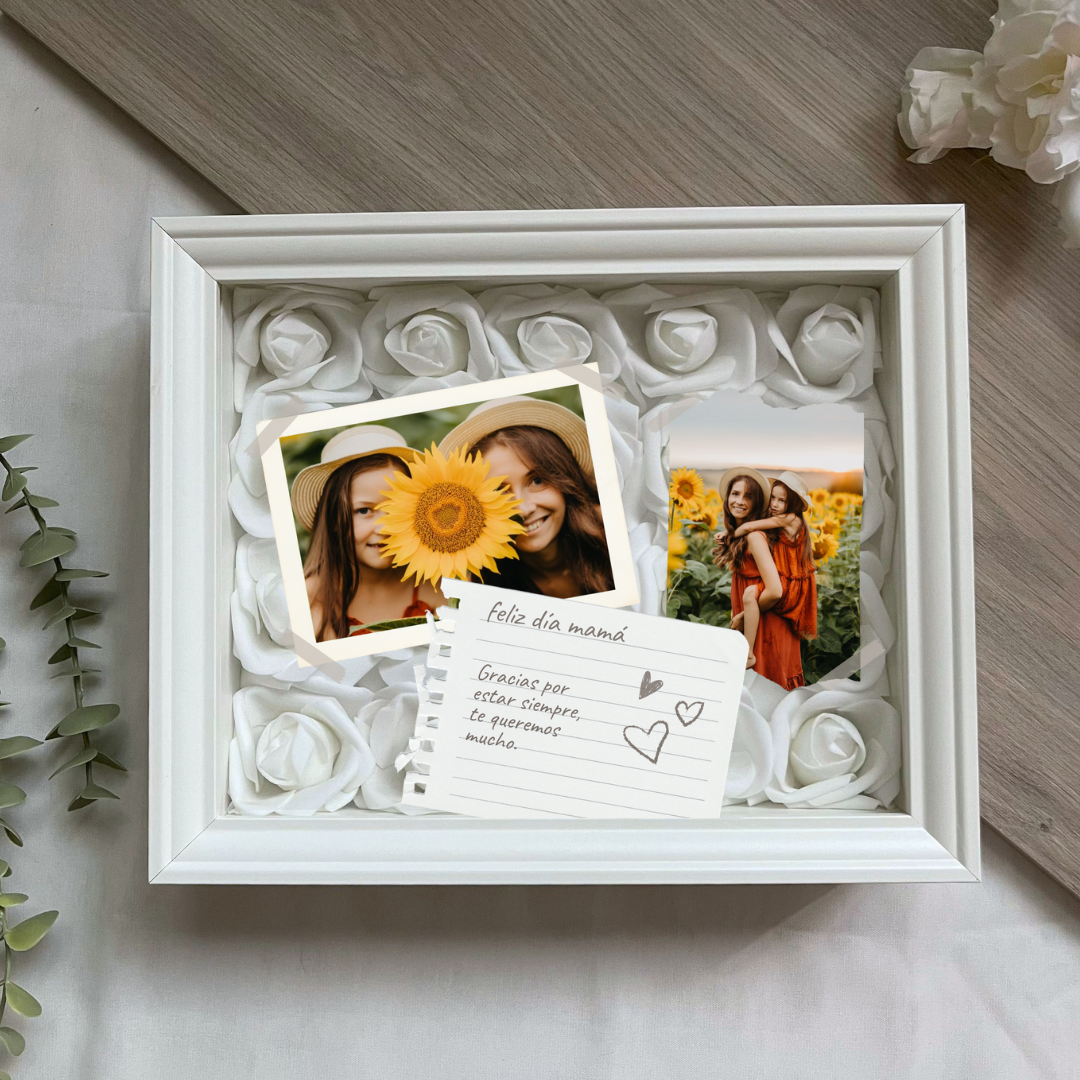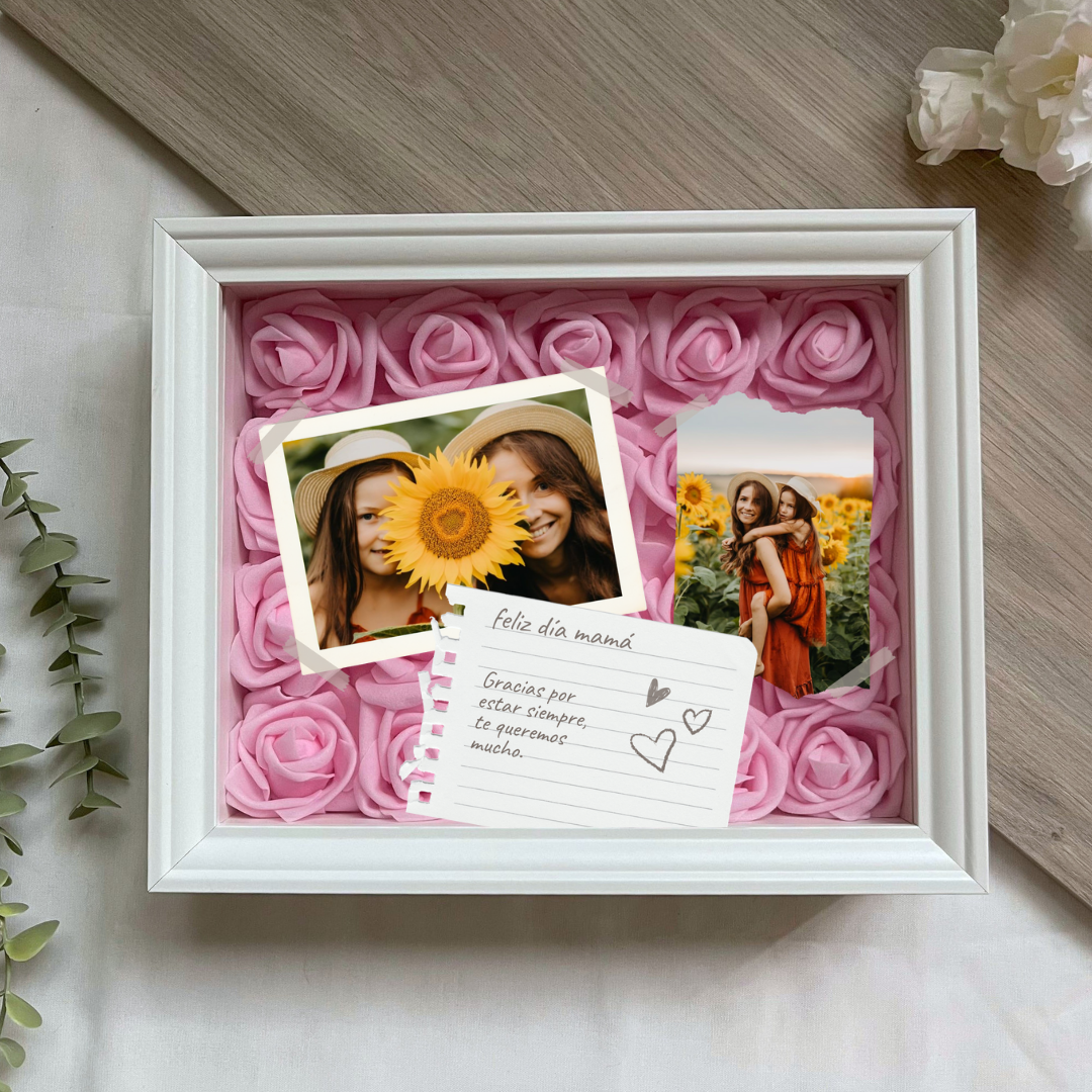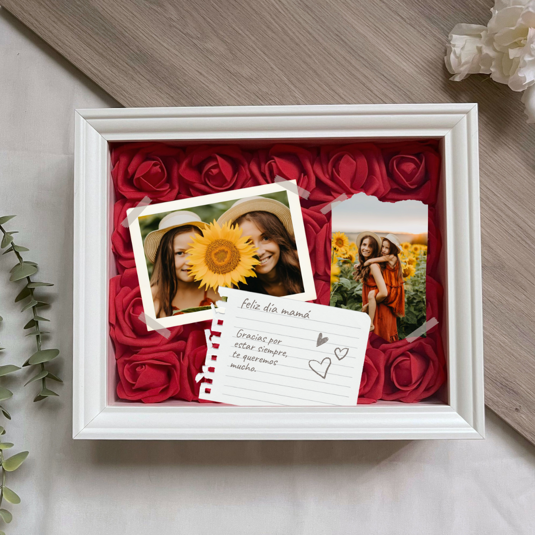 Este cuadro Personalizado hecho con rosas , es un detalle ideal para regalar en cualquier ocasión. Mide 20x25 cm y se puede colgar en la pared o apoyar sobre una superficie, como una estantería, una cómoda o una mesita de noche.