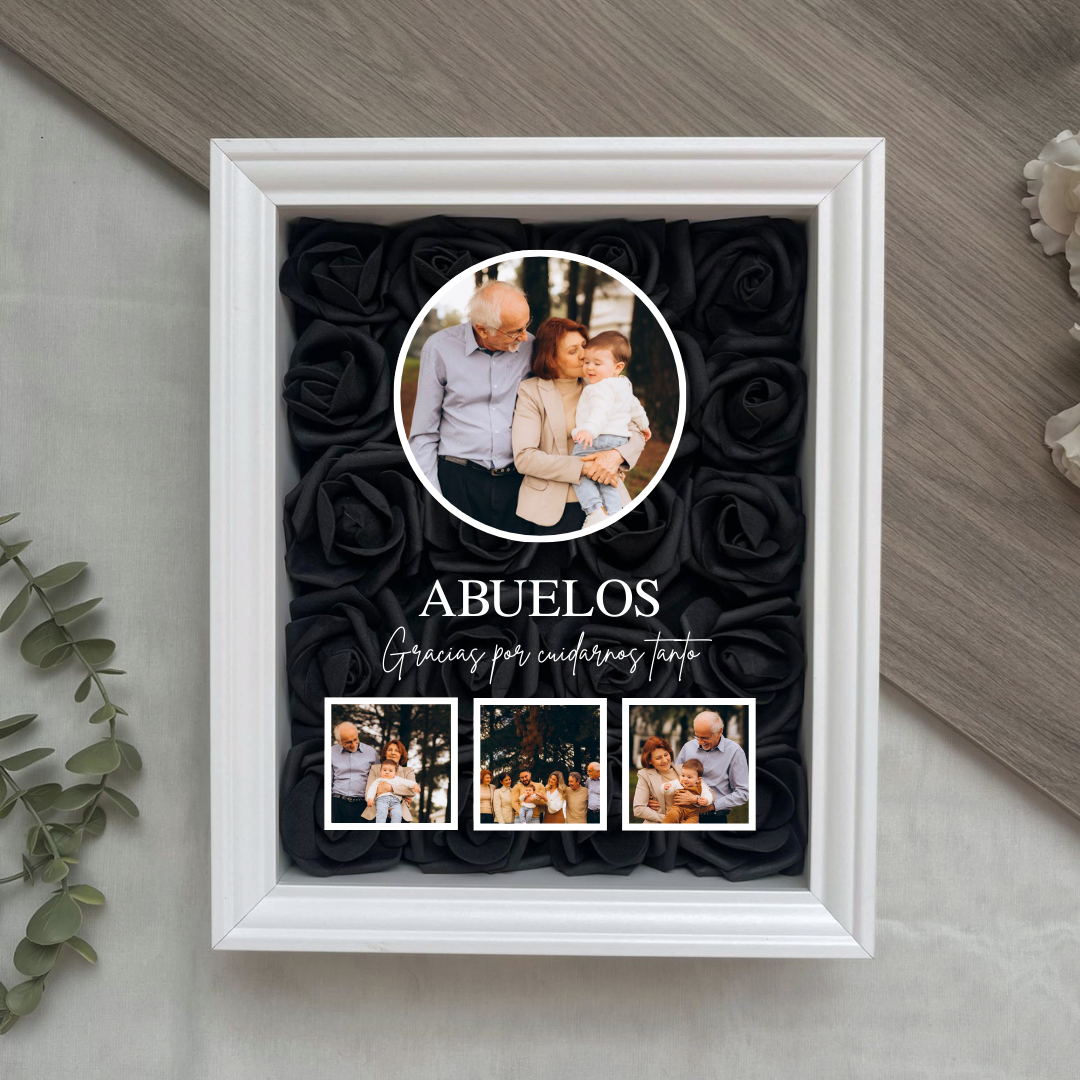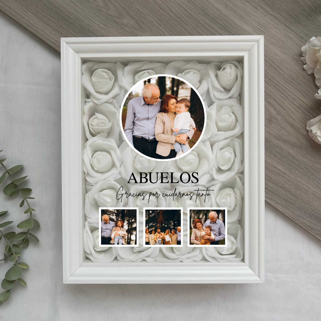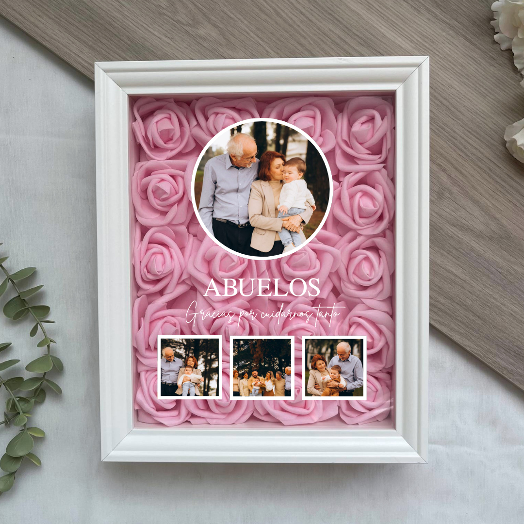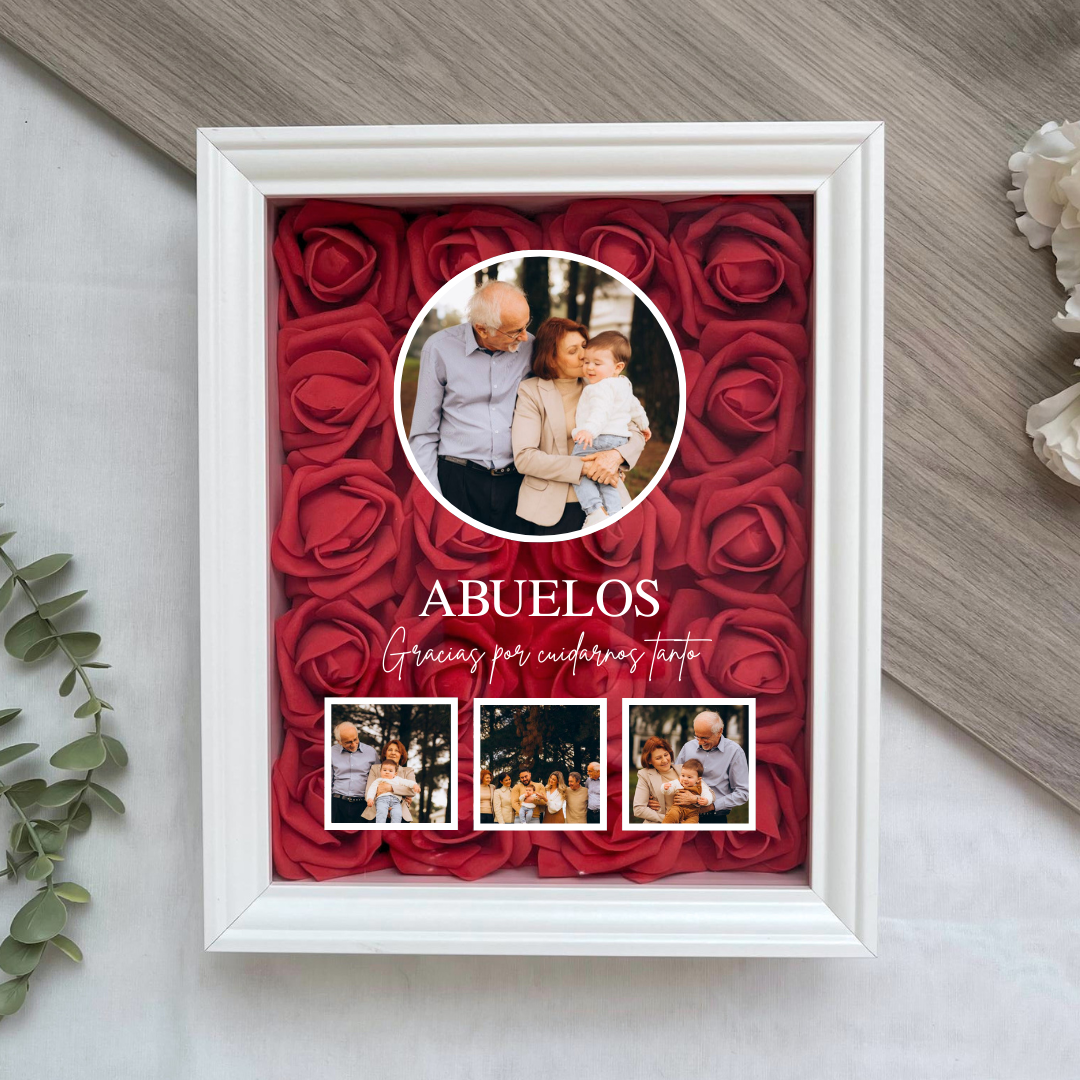 Este cuadro Personalizado hecho con rosas , es un detalle ideal para regalar en cualquier ocasión. Mide 20x25 cm y se puede colgar en la pared o apoyar sobre una superficie, como una estantería, una cómoda o una mesita de noche.