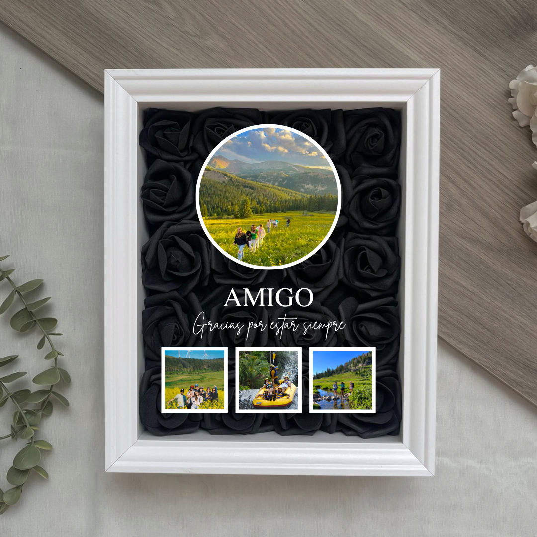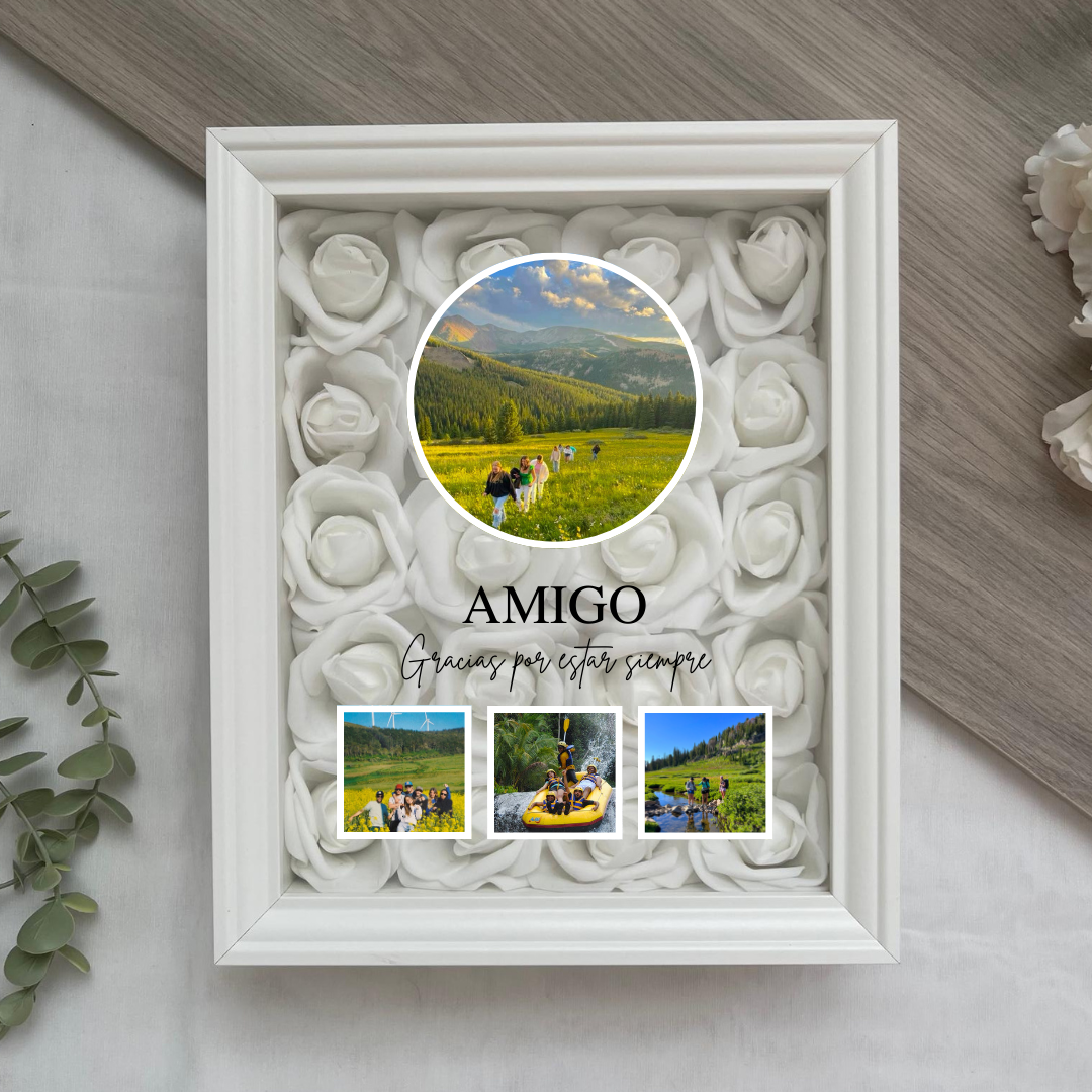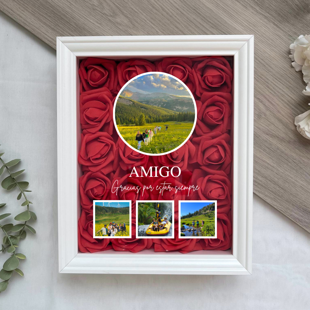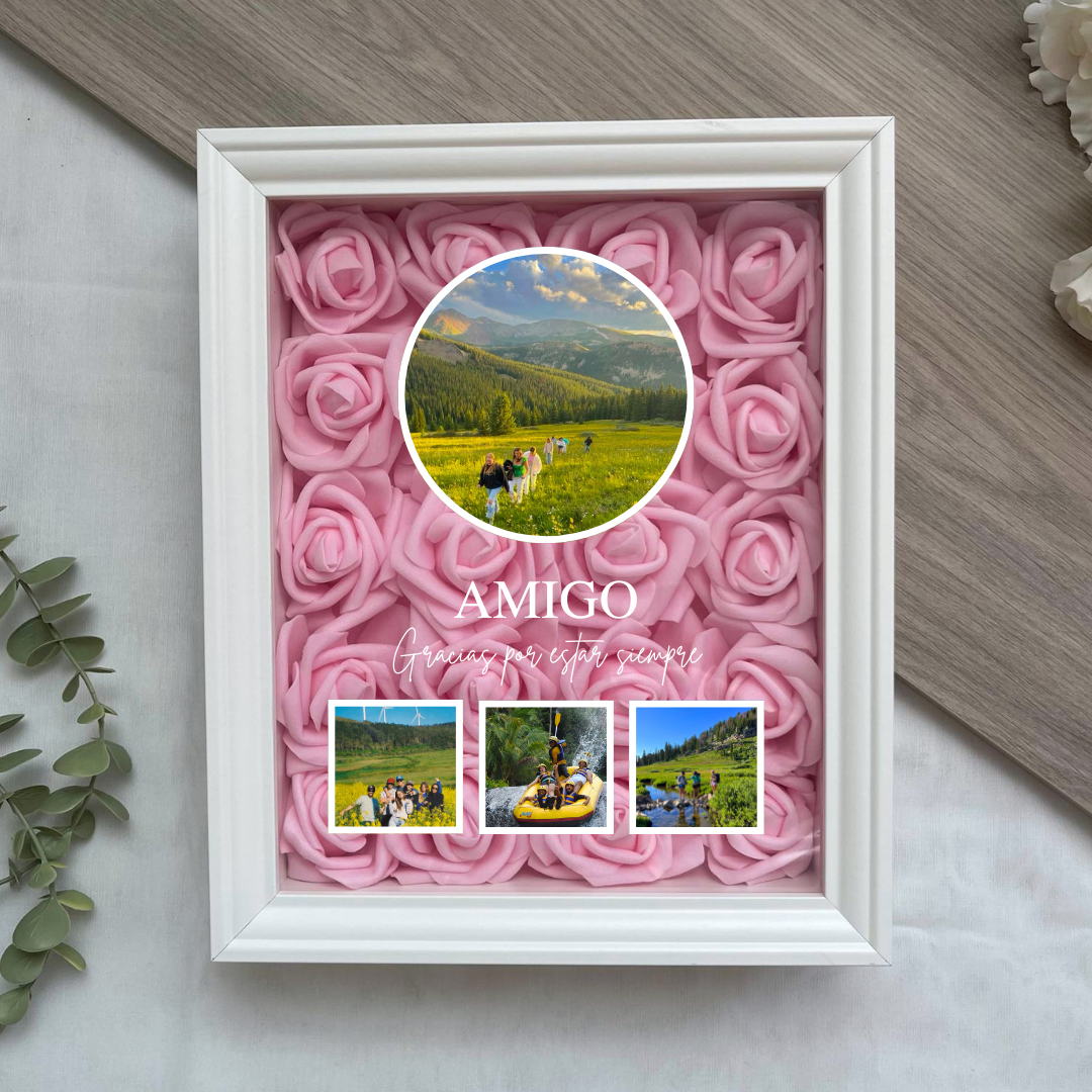 Este cuadro Personalizado hecho con rosas , es un detalle ideal para regalar en cualquier ocasión. Mide 20x25 cm y se puede colgar en la pared o apoyar sobre una superficie, como una estantería, una cómoda o una mesita de noche.