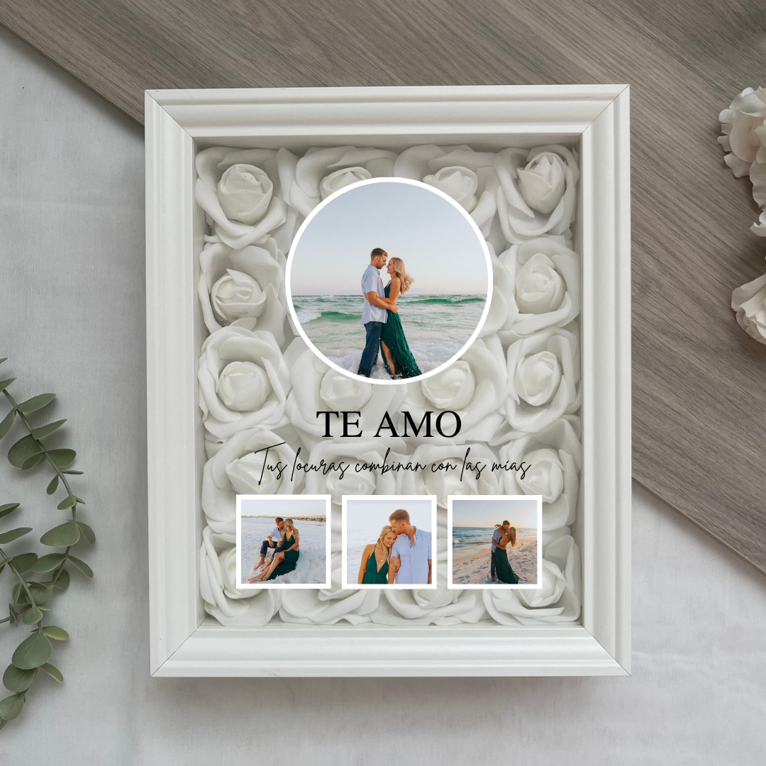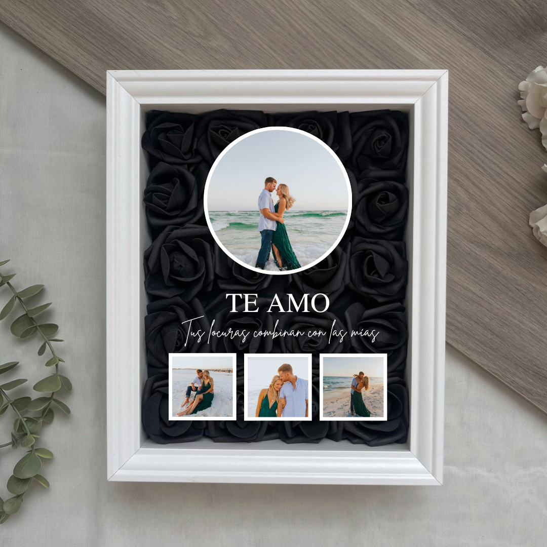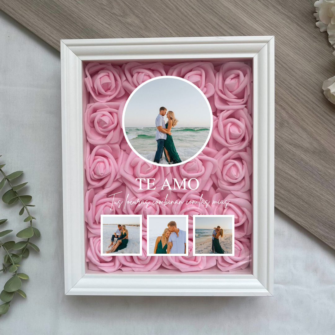 Este cuadro Personalizado hecho con rosas , es un detalle ideal para regalar en cualquier ocasión. Mide 20x25 cm y se puede colgar en la pared o apoyar sobre una superficie, como una estantería, una cómoda o una mesita de noche.