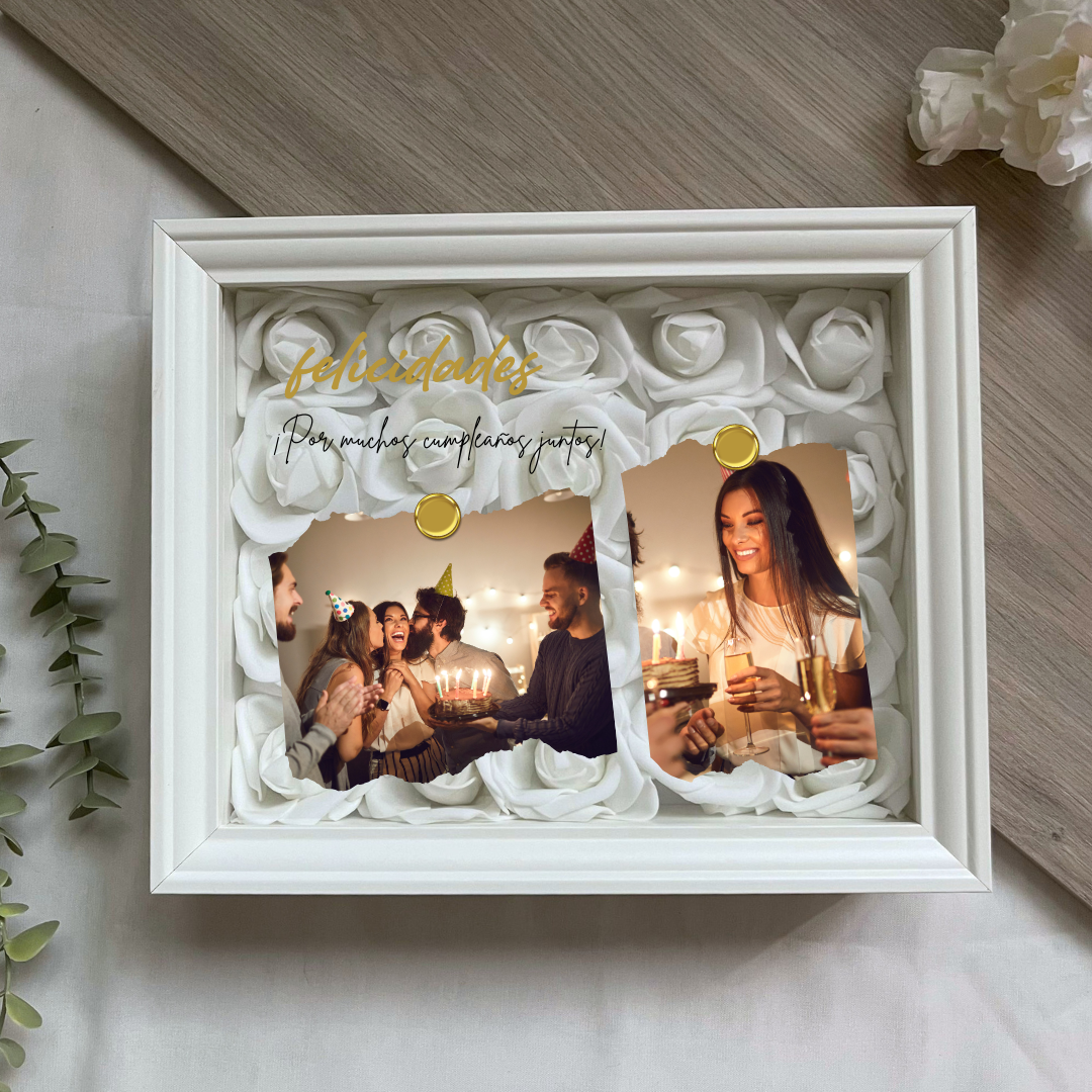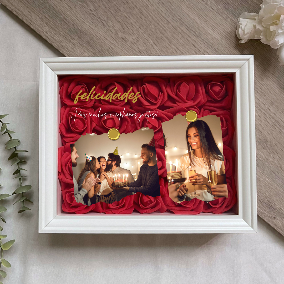 Este cuadro Personalizado hecho con rosas , es un detalle ideal para regalar en cualquier ocasión. Mide 20x25 cm y se puede colgar en la pared o apoyar sobre una superficie, como una estantería, una cómoda o una mesita de noche.