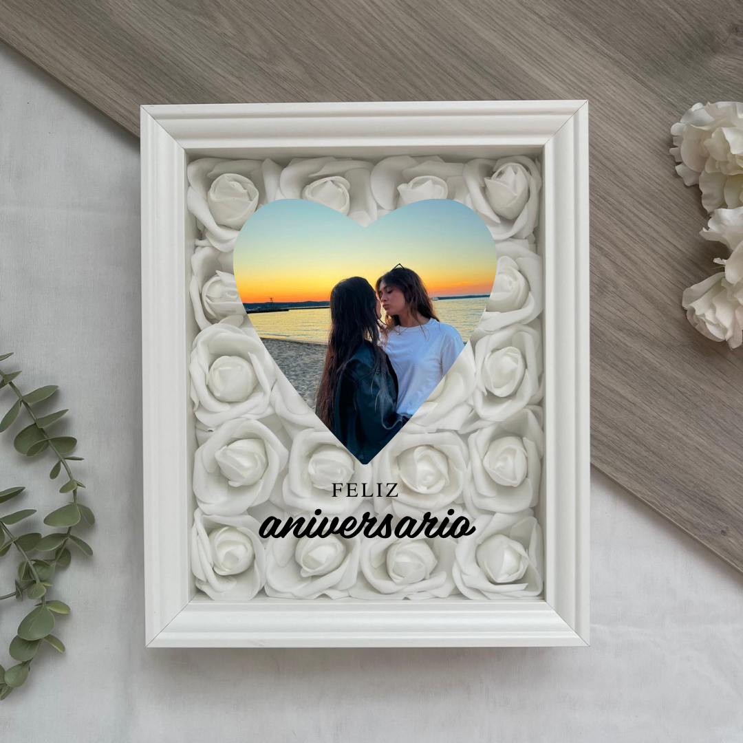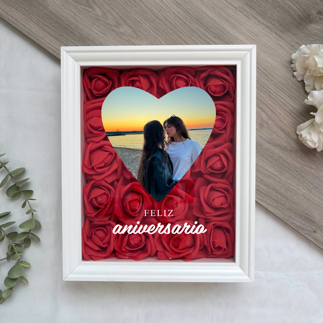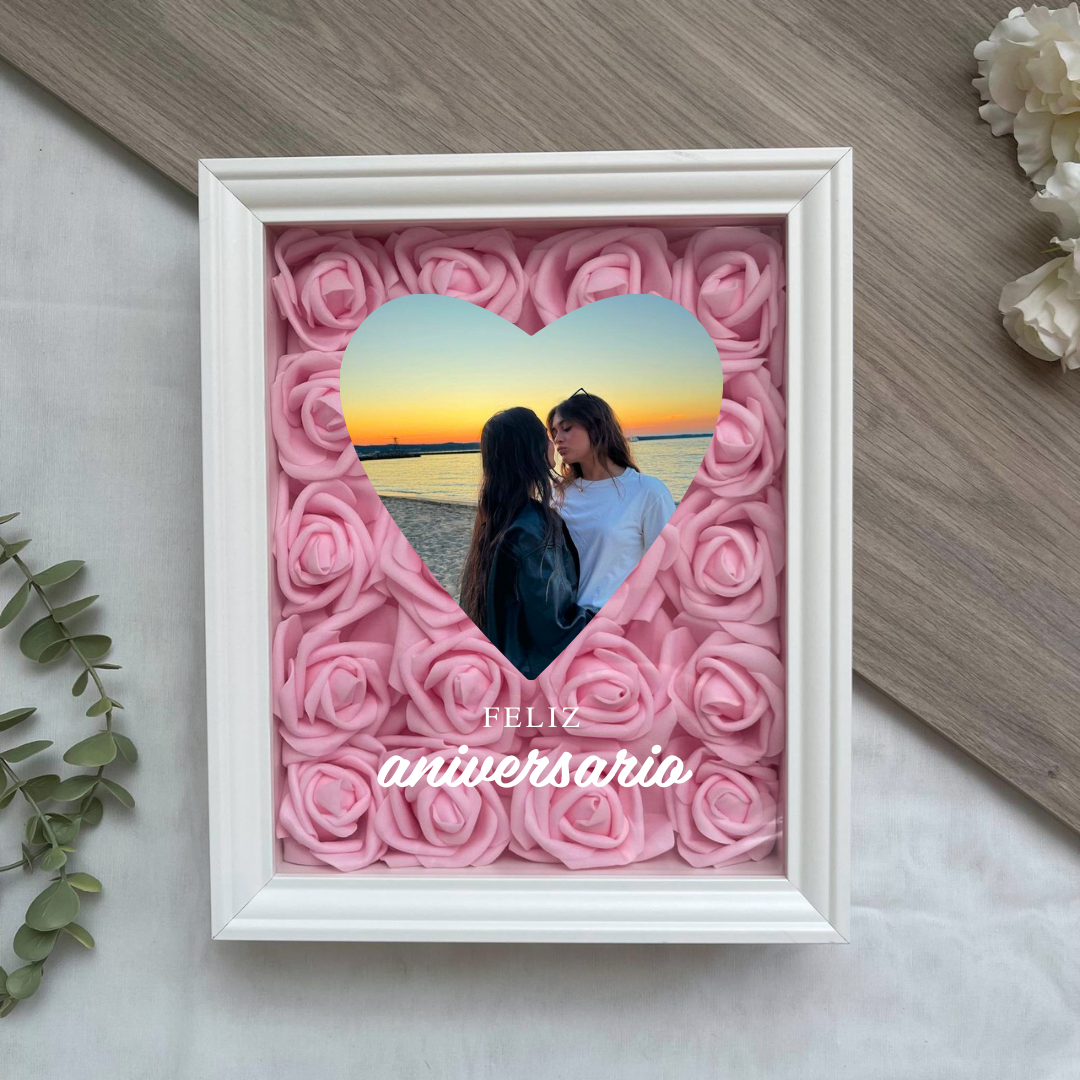 Este cuadro Personalizado hecho con rosas , es un detalle ideal para regalar en cualquier ocasión. Mide 20x25 cm y se puede colgar en la pared o apoyar sobre una superficie, como una estantería, una cómoda o una mesita de noche.