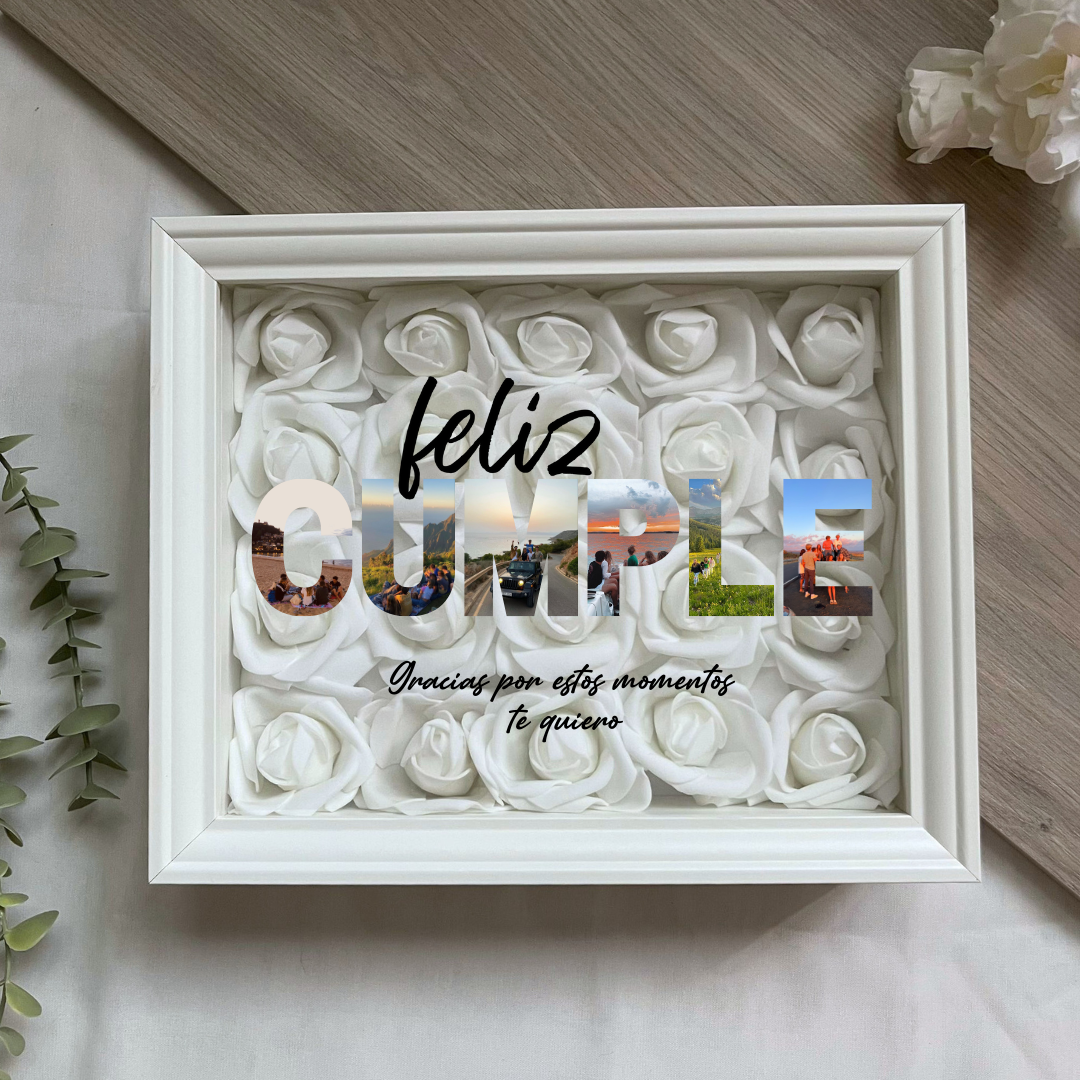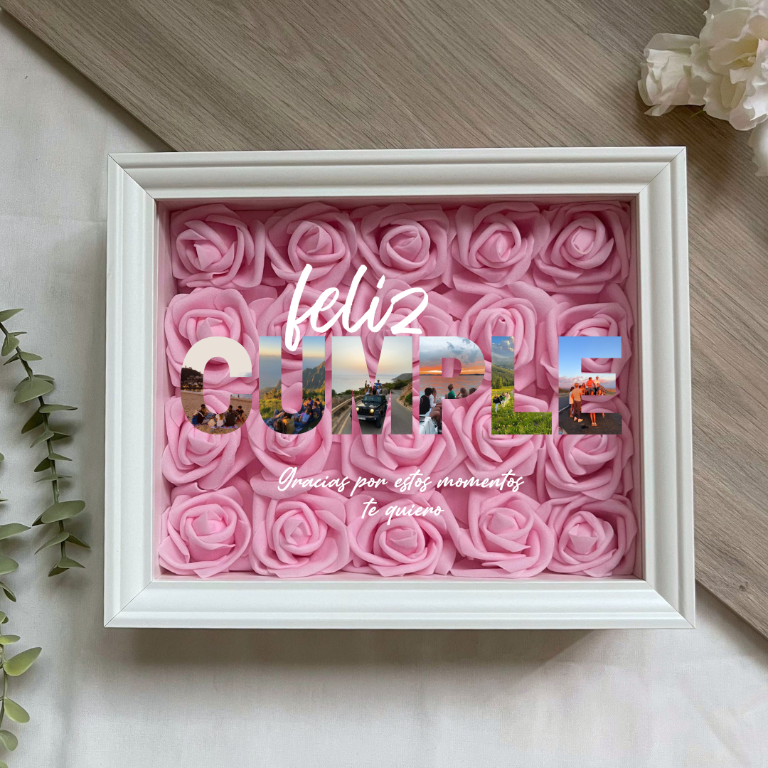 Este cuadro Personalizado hecho con rosas , es un detalle ideal para regalar en cualquier ocasión. Mide 20x25 cm y se puede colgar en la pared o apoyar sobre una superficie, como una estantería, una cómoda o una mesita de noche.