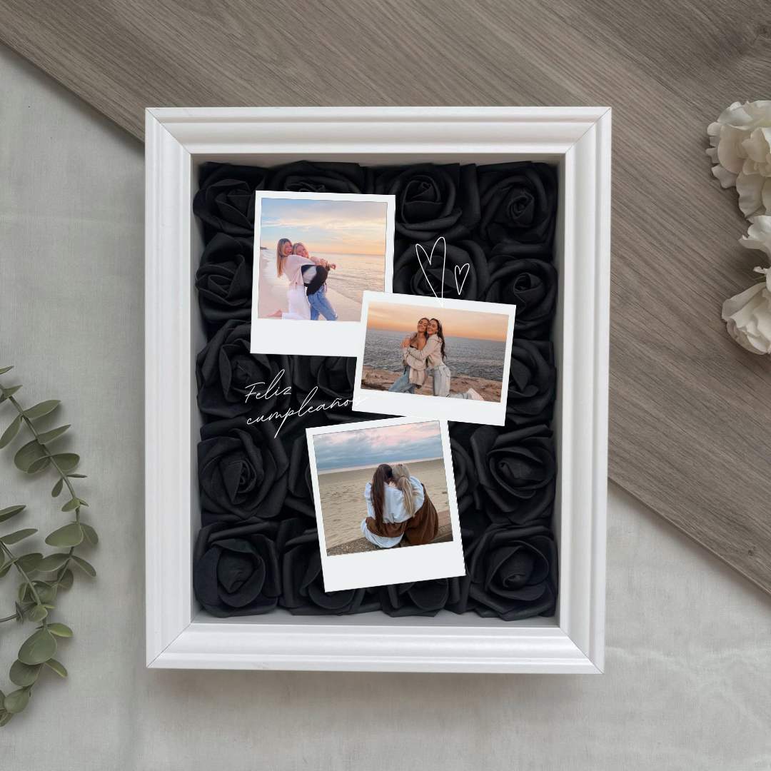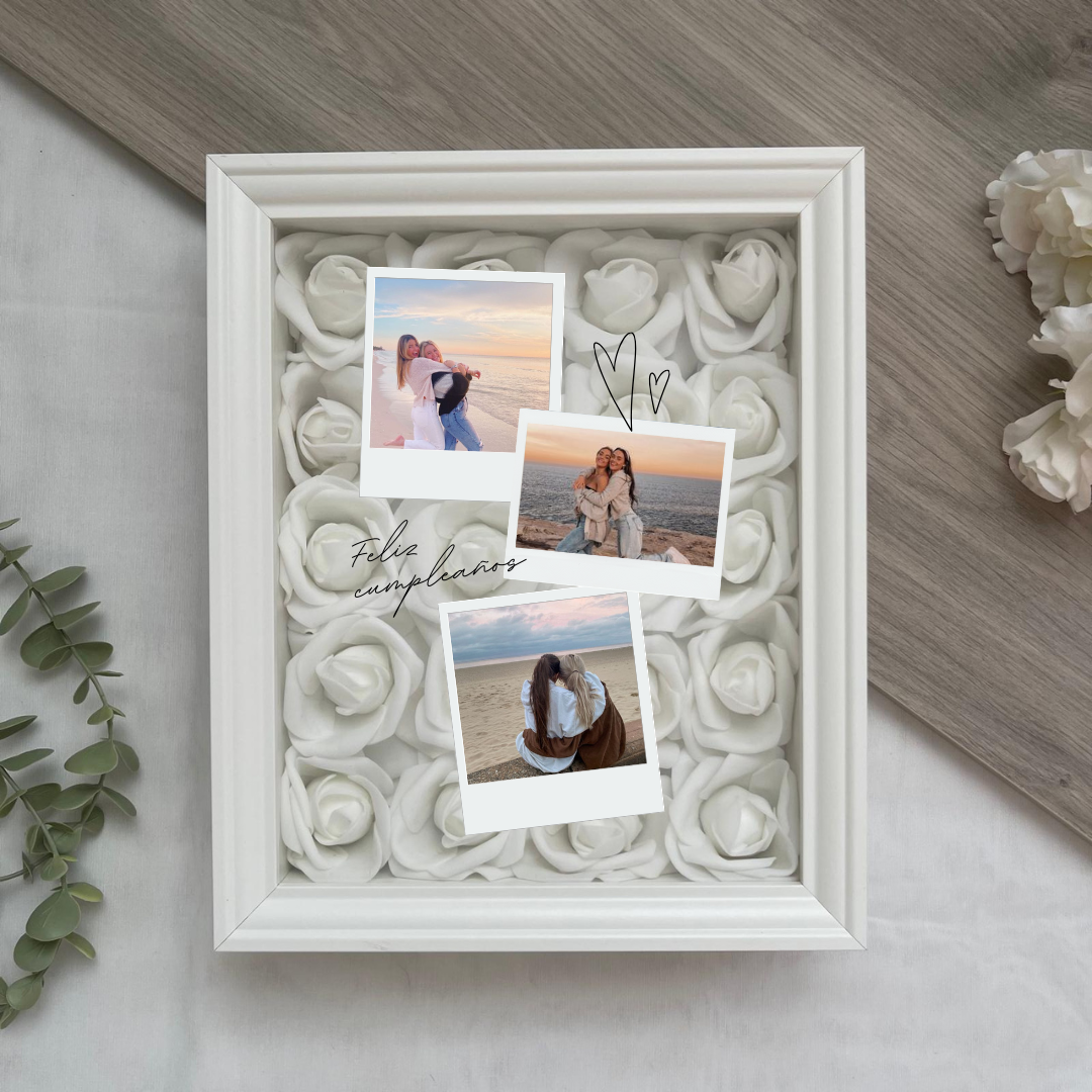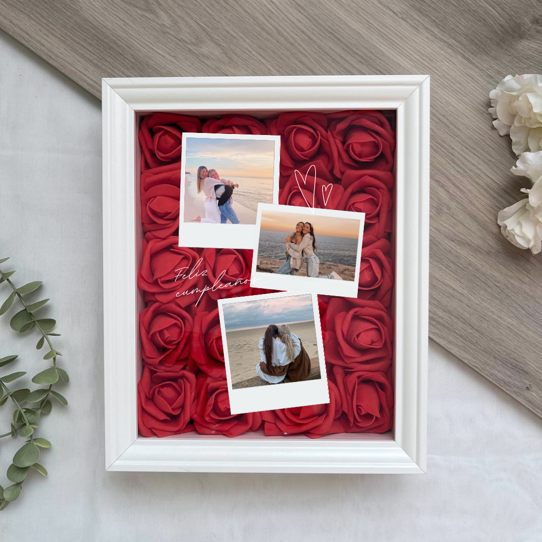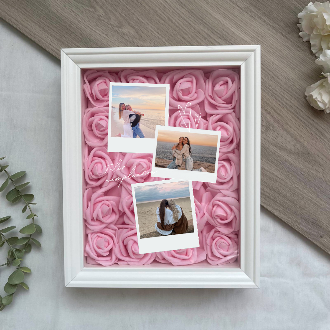 Este cuadro Personalizado hecho con rosas , es un detalle ideal para regalar en cualquier ocasión. Mide 20x25 cm y se puede colgar en la pared o apoyar sobre una superficie, como una estantería, una cómoda o una mesita de noche.