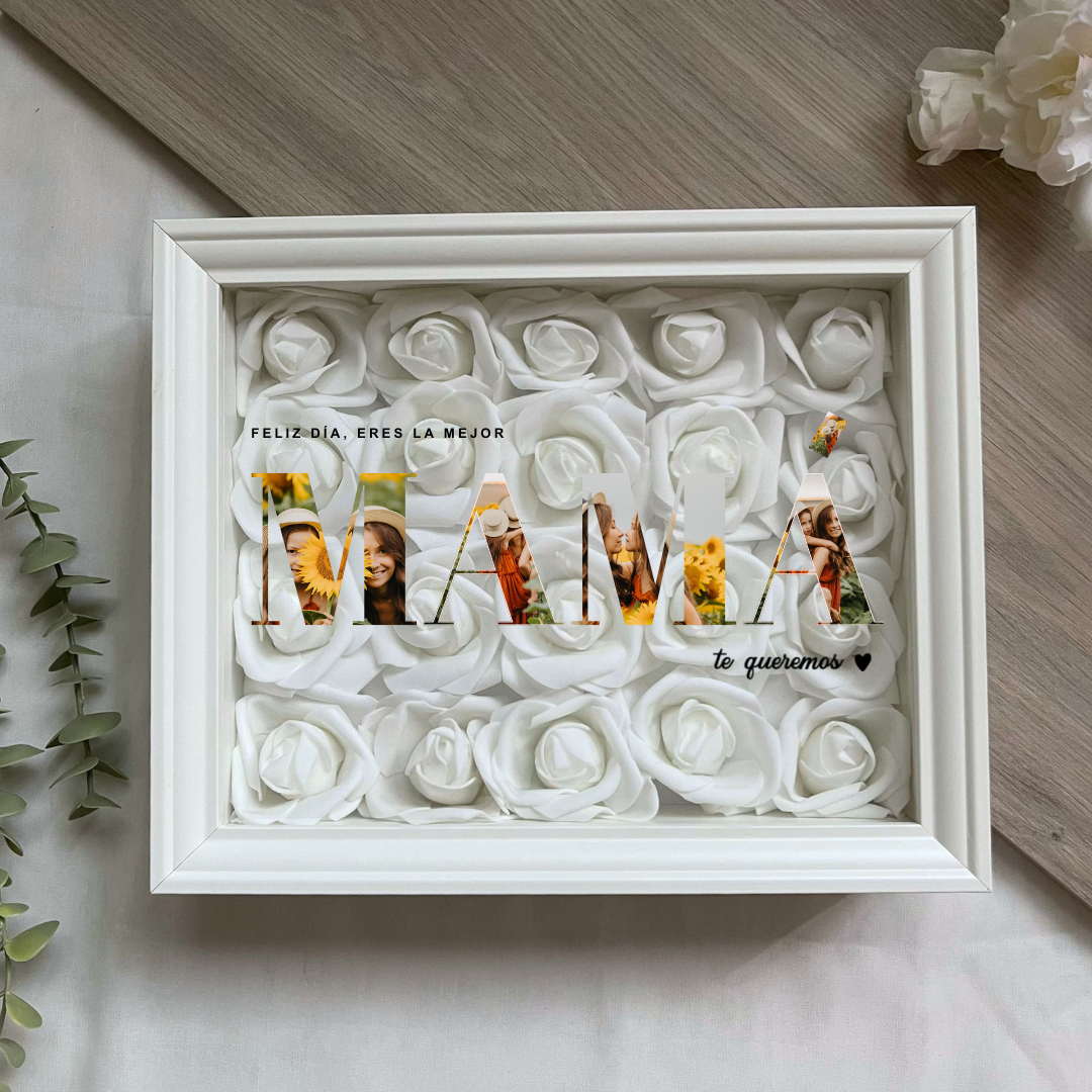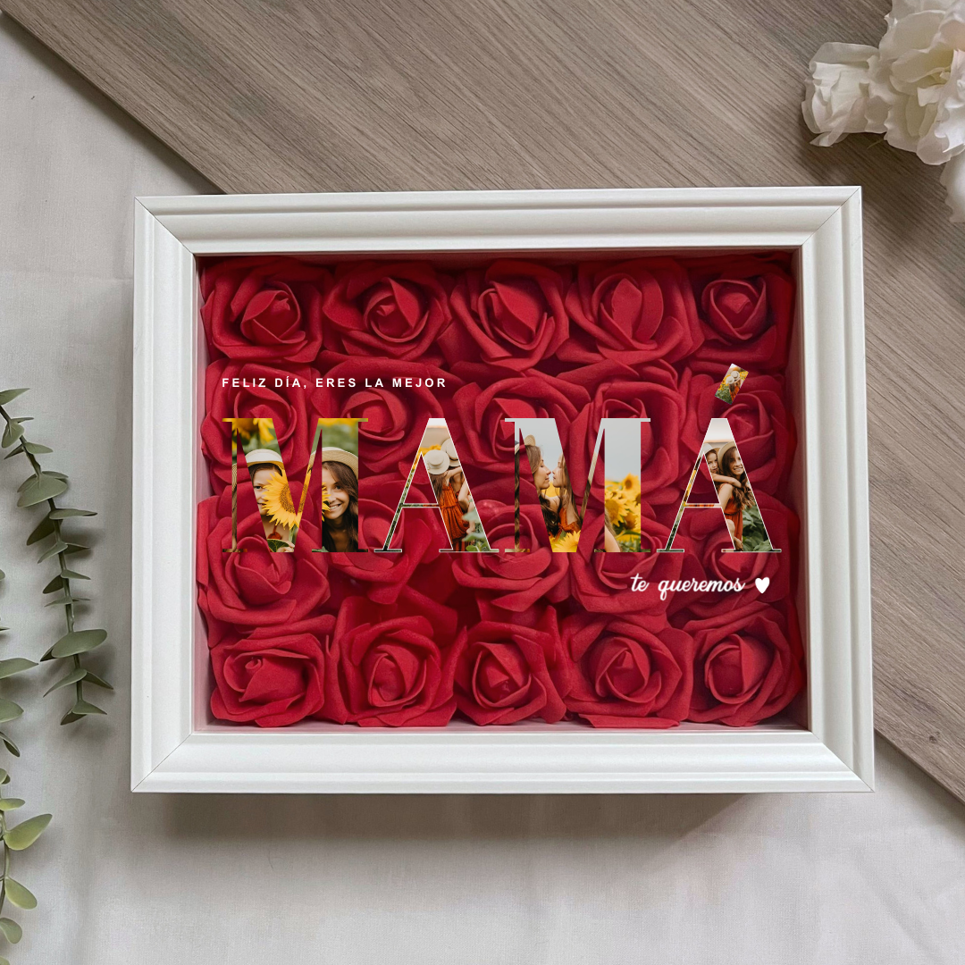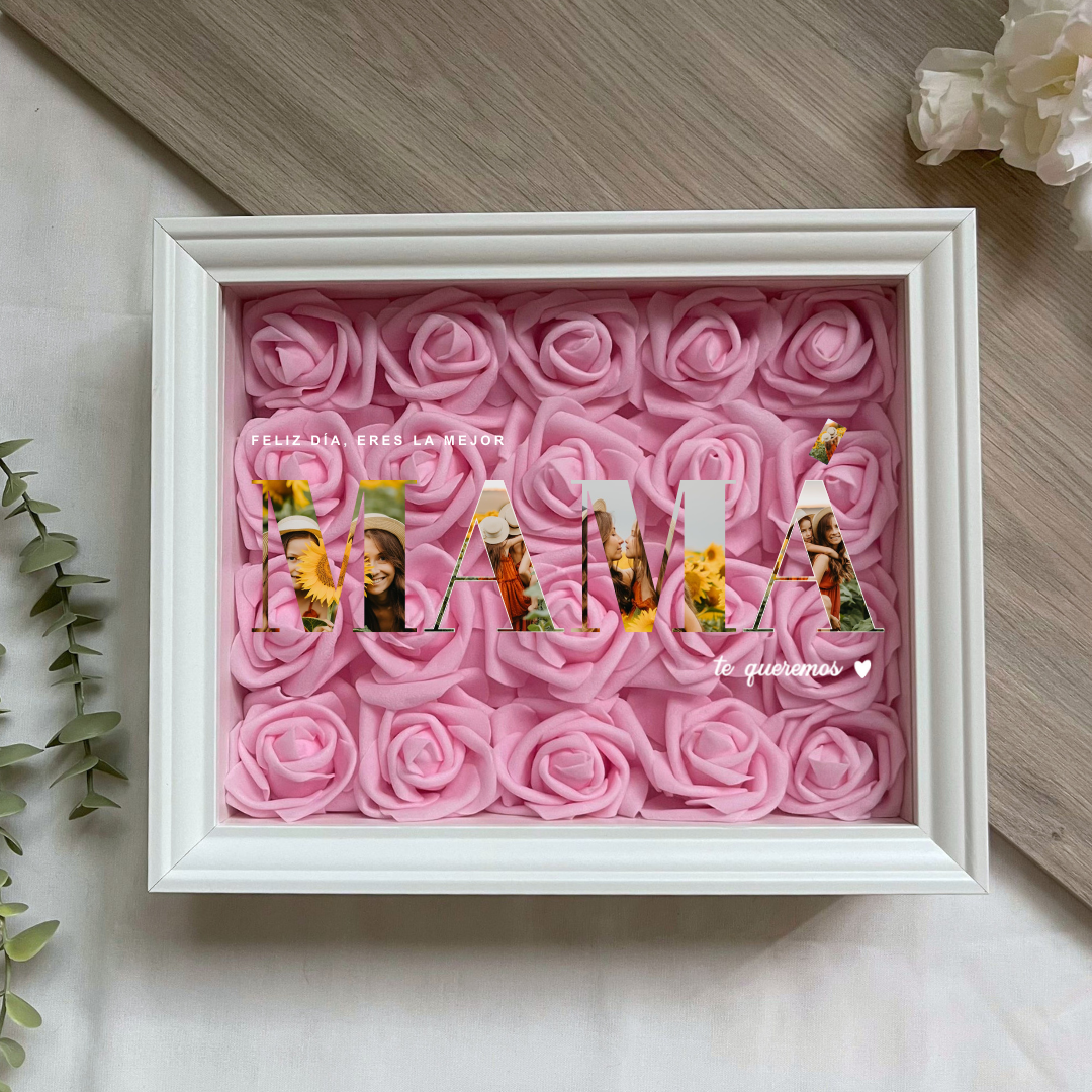 Este cuadro Personalizado hecho con rosas , es un detalle ideal para regalar en cualquier ocasión. Mide 20x25 cm y se puede colgar en la pared o apoyar sobre una superficie, como una estantería, una cómoda o una mesita de noche.