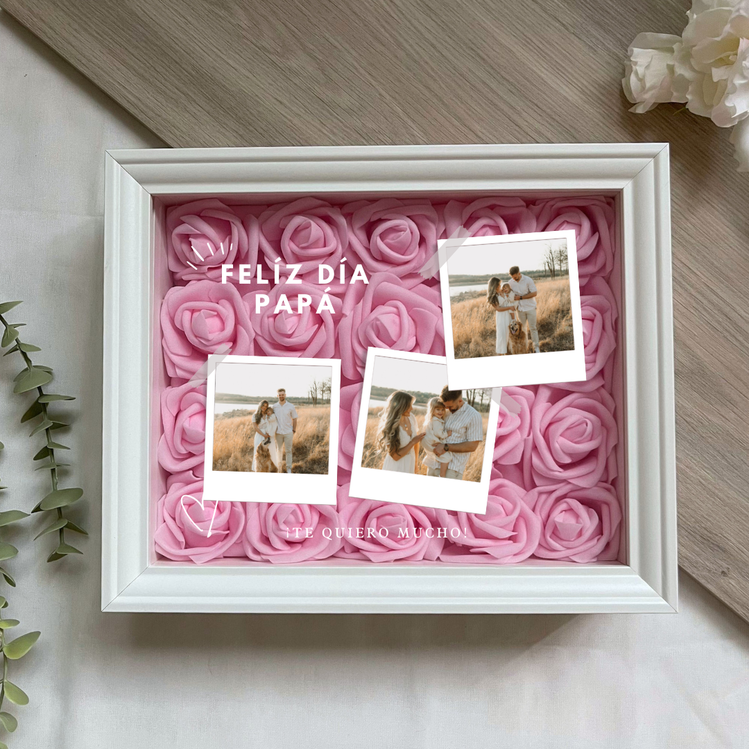 Este cuadro Personalizado hecho con rosas , es un detalle ideal para regalar en cualquier ocasión. Mide 20x25 cm y se puede colgar en la pared o apoyar sobre una superficie, como una estantería, una cómoda o una mesita de noche.