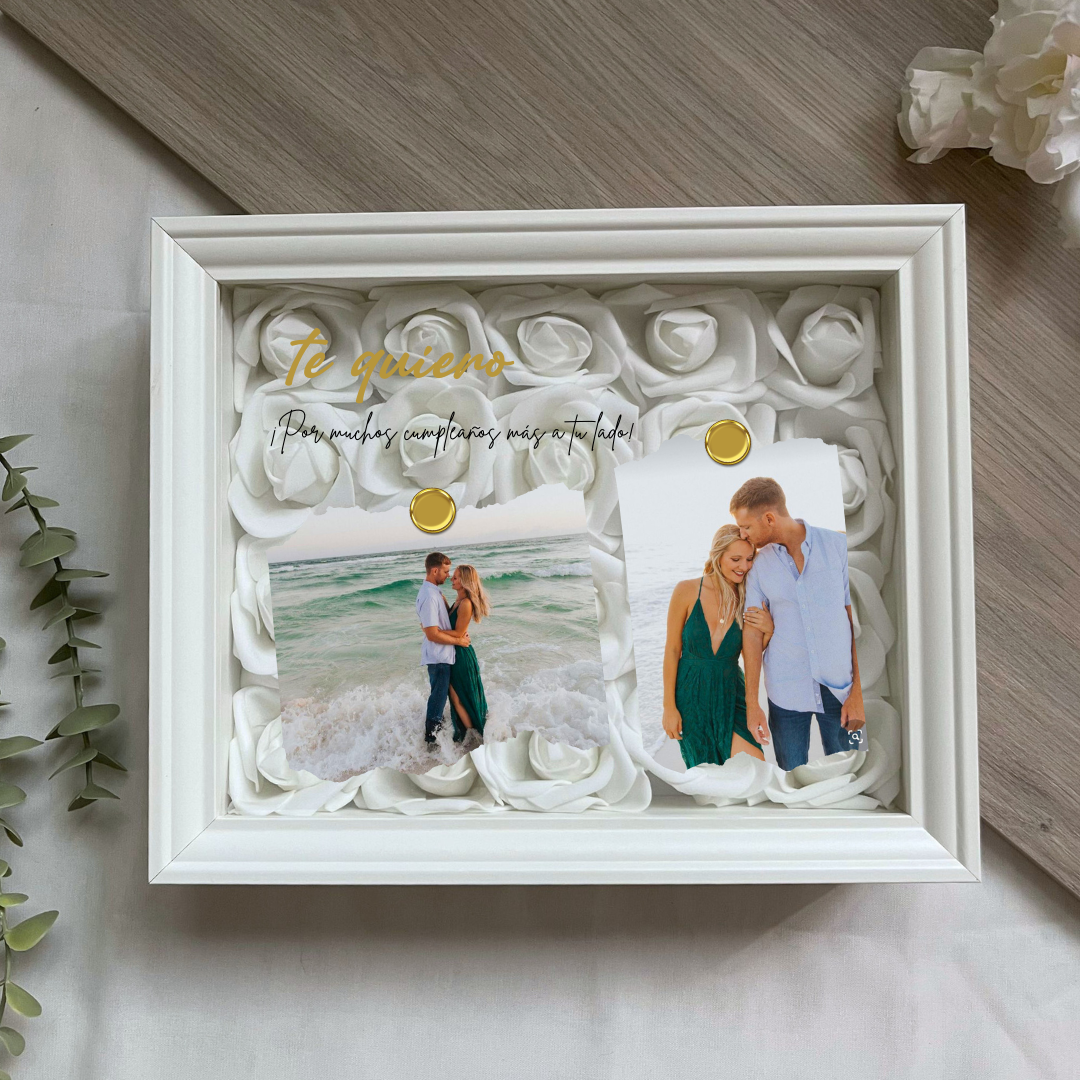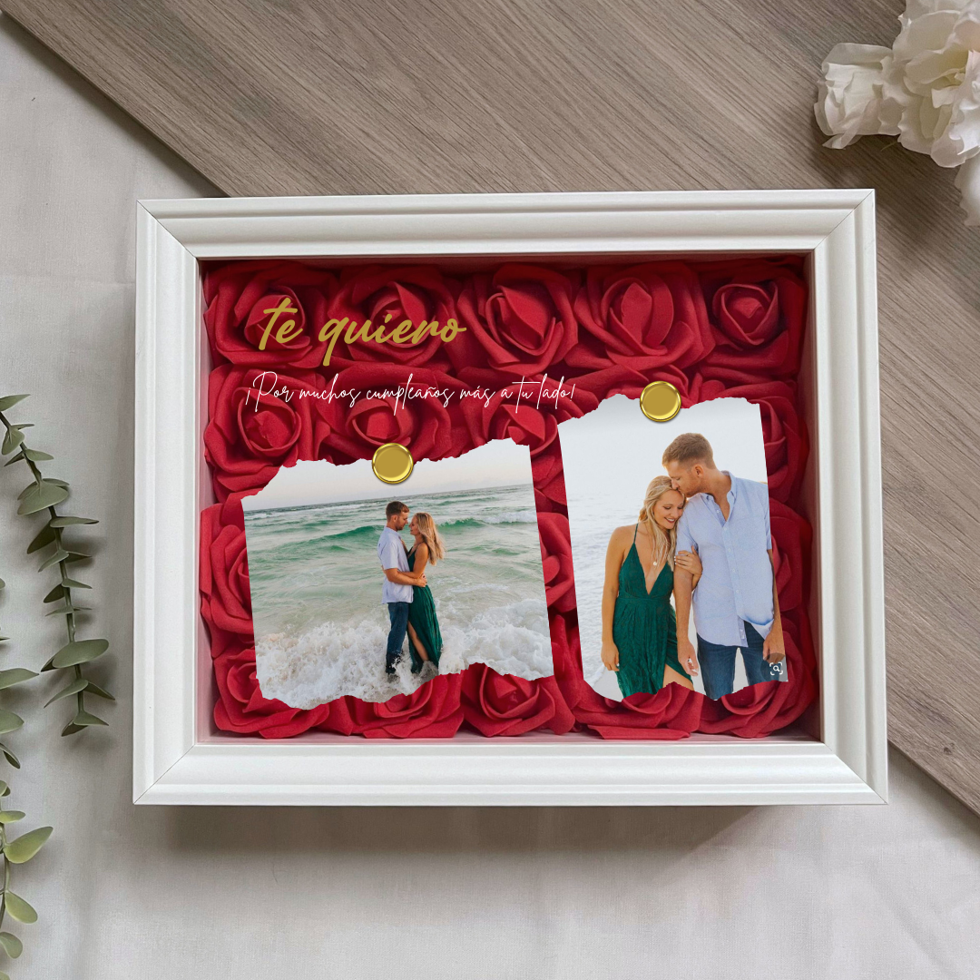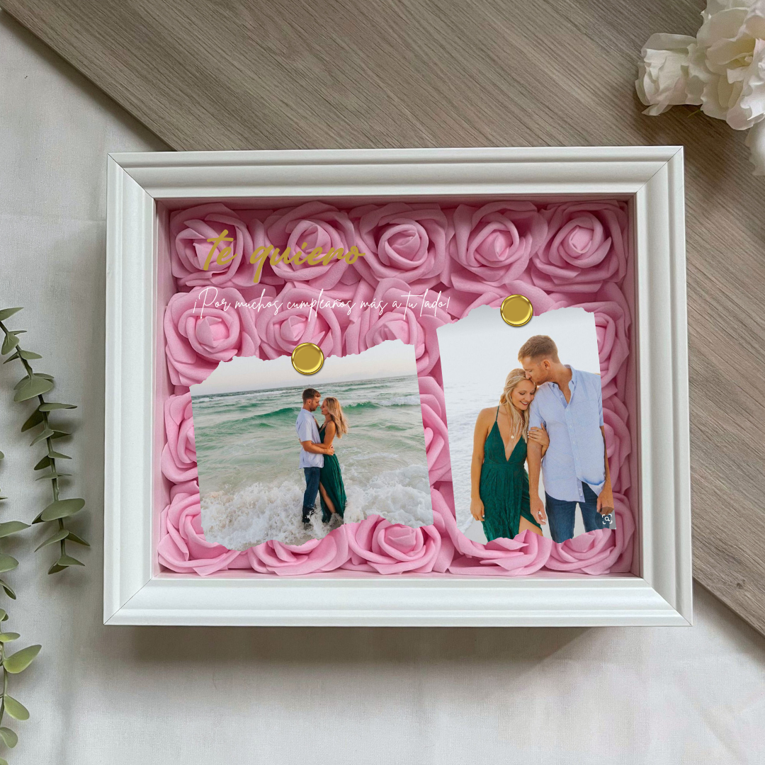 Este cuadro Personalizado hecho con rosas , es un detalle ideal para regalar en cualquier ocasión. Mide 20x25 cm y se puede colgar en la pared o apoyar sobre una superficie, como una estantería, una cómoda o una mesita de noche.