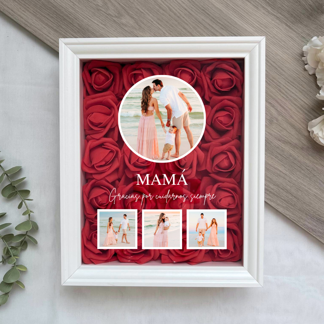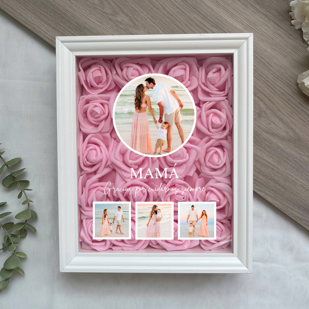 Este cuadro Personalizado hecho con rosas , es un detalle ideal para regalar en cualquier ocasión. Mide 20x25 cm y se puede colgar en la pared o apoyar sobre una superficie, como una estantería, una cómoda o una mesita de noche.