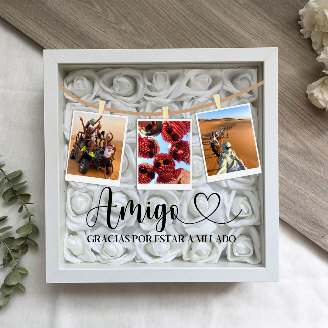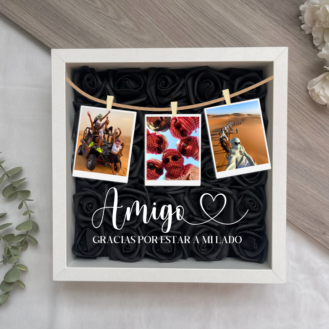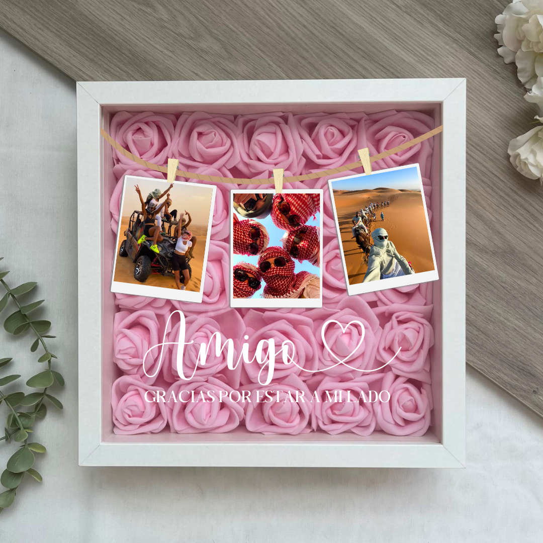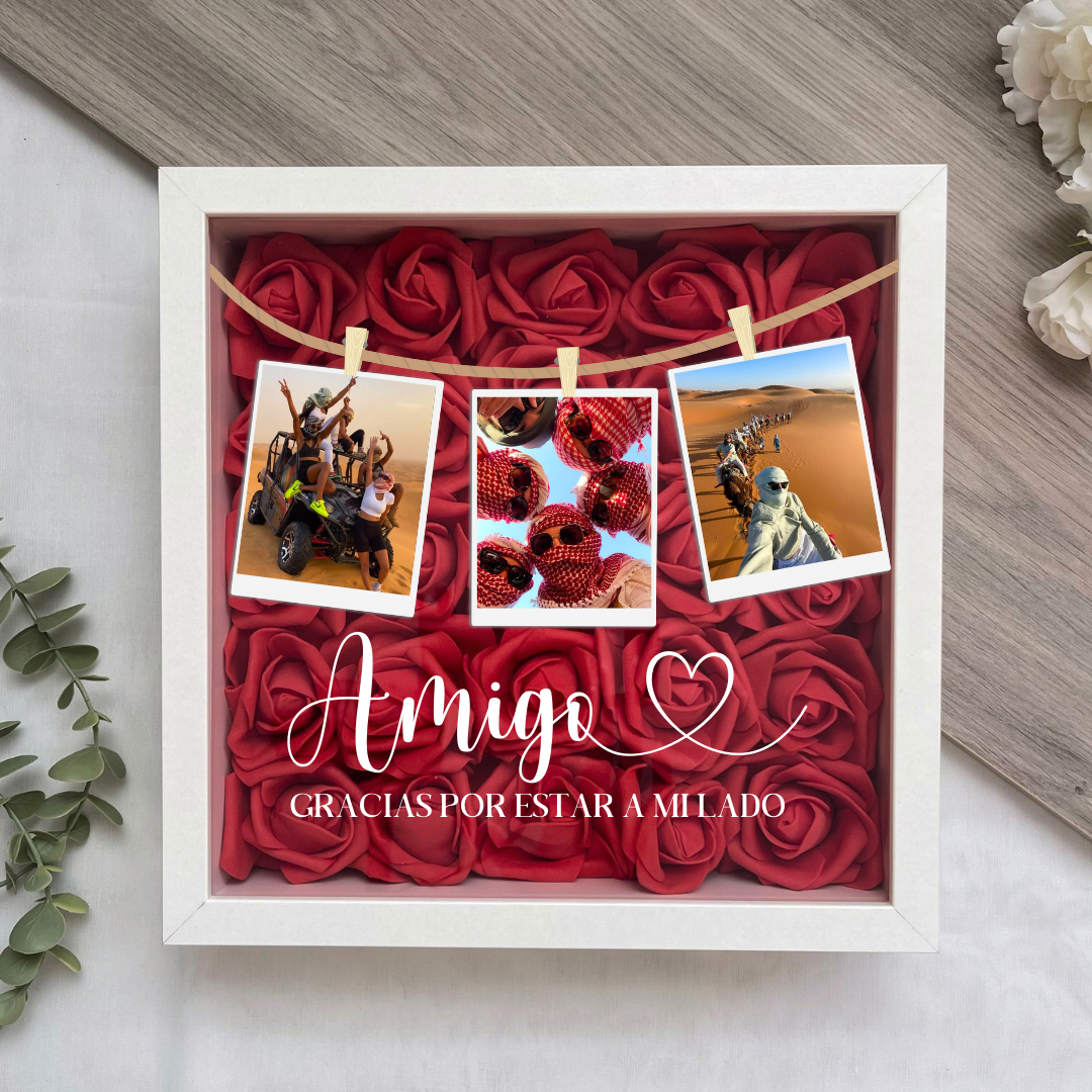 Este cuadro Personalizado hecho con rosas , es el regalo ideal para sorprenderle. Mide 25x25 cm y se puede colgar en la pared o apoyar sobre una superficie, como una estantería, una cómoda o una mesita de noche.