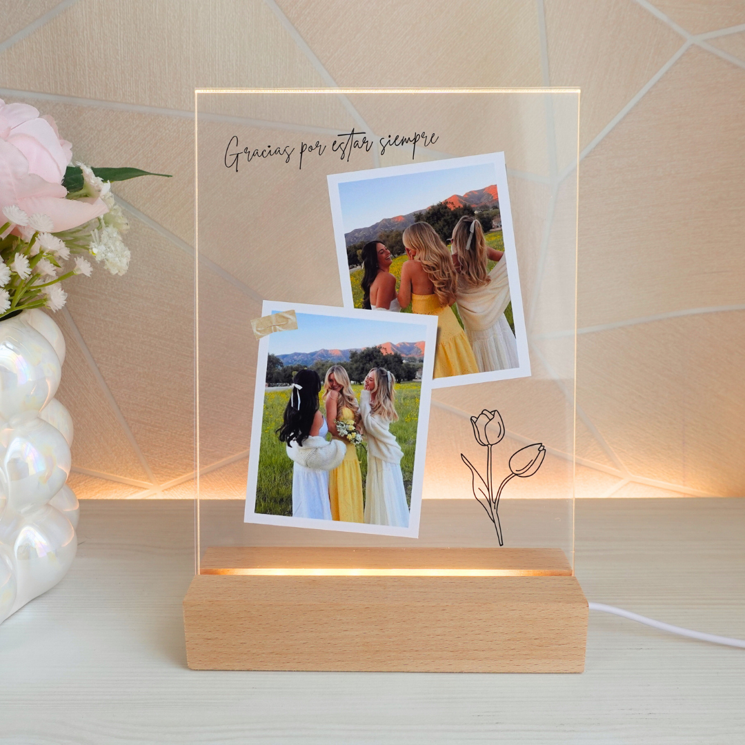 💝 Un regalo pensado para emocionar, con fotos y dedicatoria que darán un toque personal y único. Su luz suave transformará cualquier espacio en un lugar lleno de recuerdos y sentimientos.