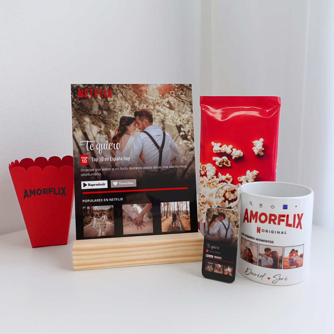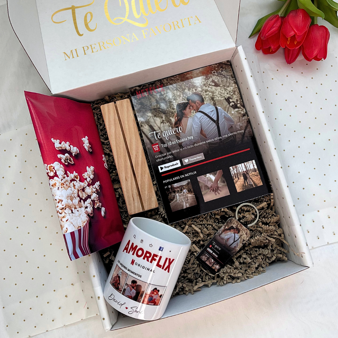 La BOX NETFLIX es el detalle ideal para regalar a tu pareja y celebrar ese momento juntos.